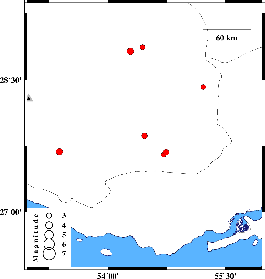 | 2017/12/24 | 10:57:15.1 | 14:27:15.1 | 27.685 | 53.379 | 14 | ML:3.8 | Fars Province, 44 km North-East of Lamerd | ||
