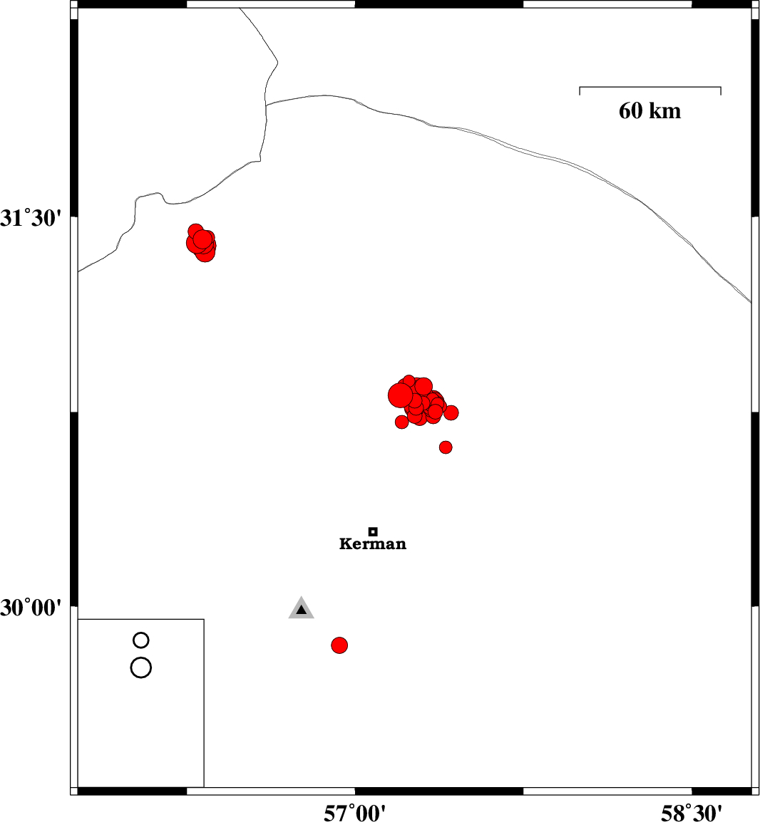 2017/12/27 10:13:09.7 13:43:09.7 30.75157.35714 ML:2.9 Kerman Province, 58 km North-East of Kerman