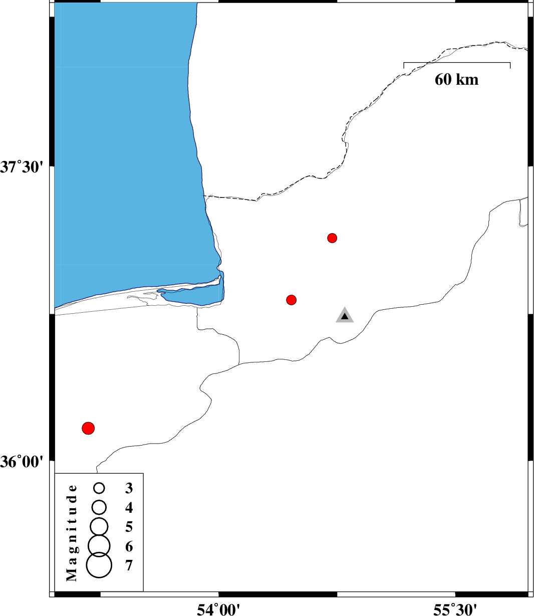 | 2017/12/30 | 00:56:33.9 | 04:26:33.9 | 36.822 | 54.46 | 15 | ML:2.8 | Golestan Province, 3 km of Gorgan | ||