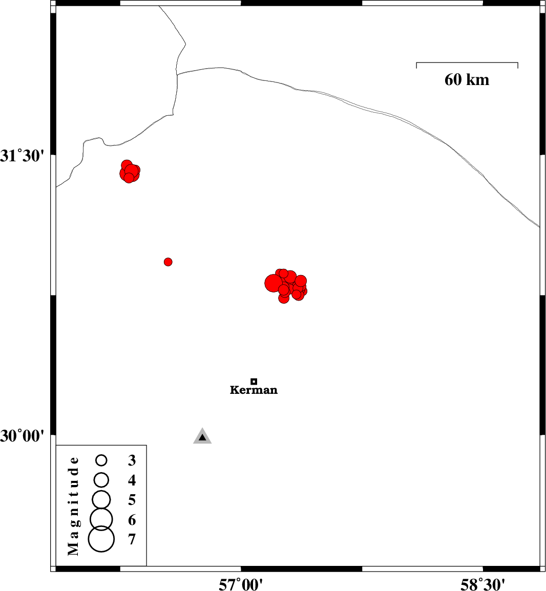 2017/12/27 10:13:09.7 13:43:09.7 30.75157.35714 ML:2.9 Kerman Province, 58 km North-East of Kerman