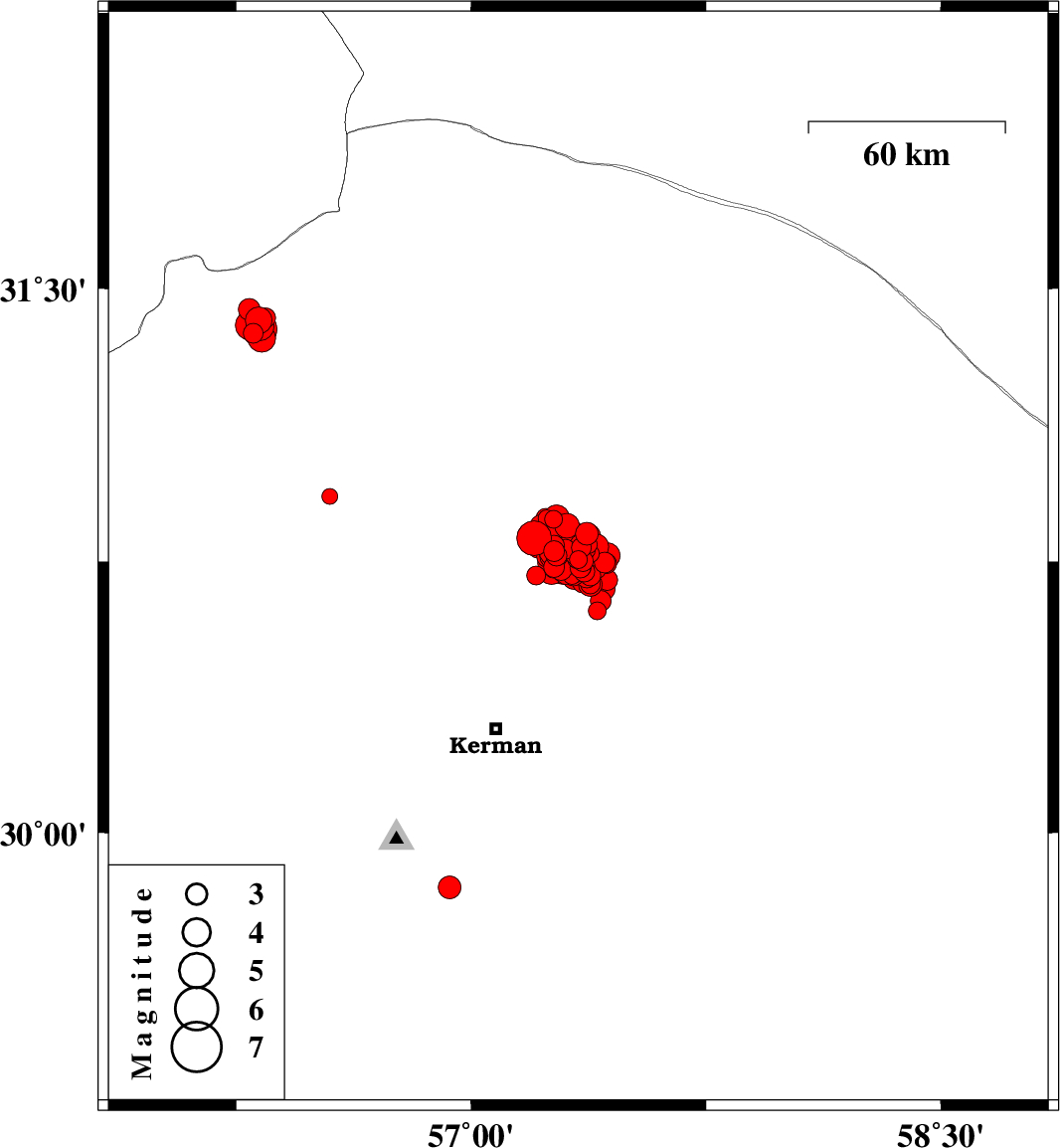 2017/12/27 10:13:09.7 13:43:09.7 30.75157.35714 ML:2.9 Kerman Province, 58 km North-East of Kerman
