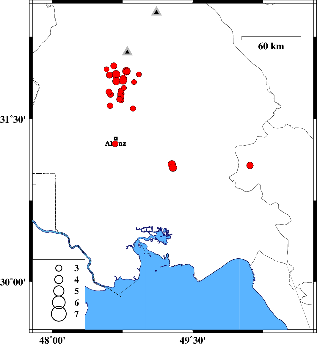 2018/01/02 04:02:47.3 07:32:47.3 31.67948.71715 ML:2.8 Khoozestan Province, 40 km North of Ahvaz