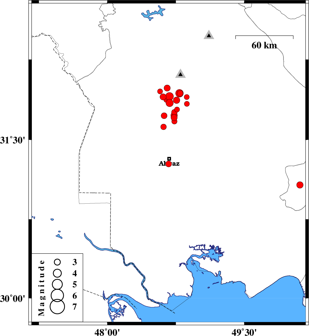 2017/12/31 03:51:44.9 07:21:44.9 31.72548.62215 ML:3 Khoozestan Province, 45 km North of Ahvaz