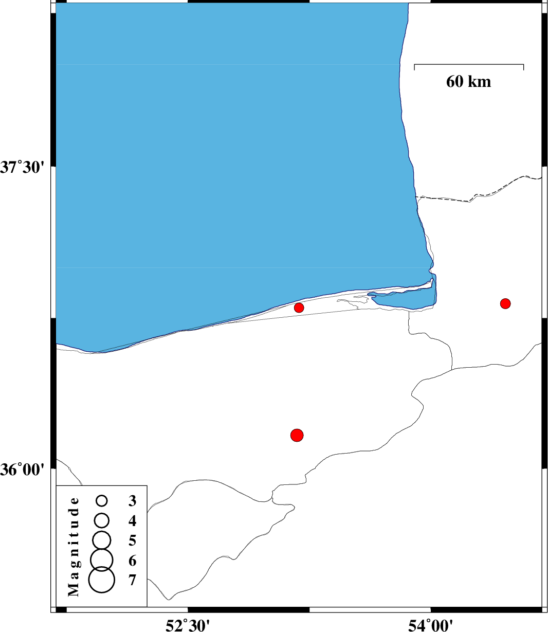 | 2017/12/30 | 00:56:33.9 | 04:26:33.9 | 36.822 | 54.46 | 15 | ML:2.8 | Golestan Province, 3 km of Gorgan | ||