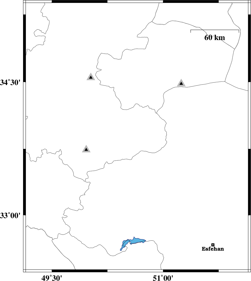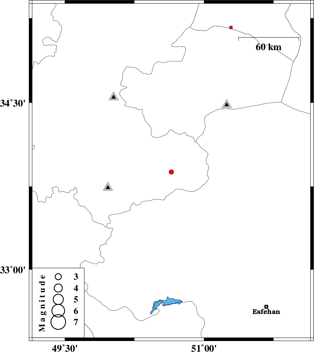 | 2018/01/04 | 09:17:43.0 | 12:47:43.0 | 33.88 | 50.648 | 9 | ML:2.2 | Markazi Province, 13 km South of Delijan | ||