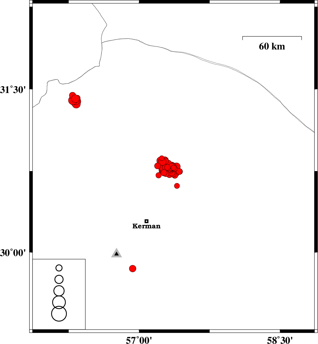 2017/12/25 12:08:23.8 15:38:23.8 30.78157.36714 ML:2.6 Kerman Province, 61 km North-East of Kerman