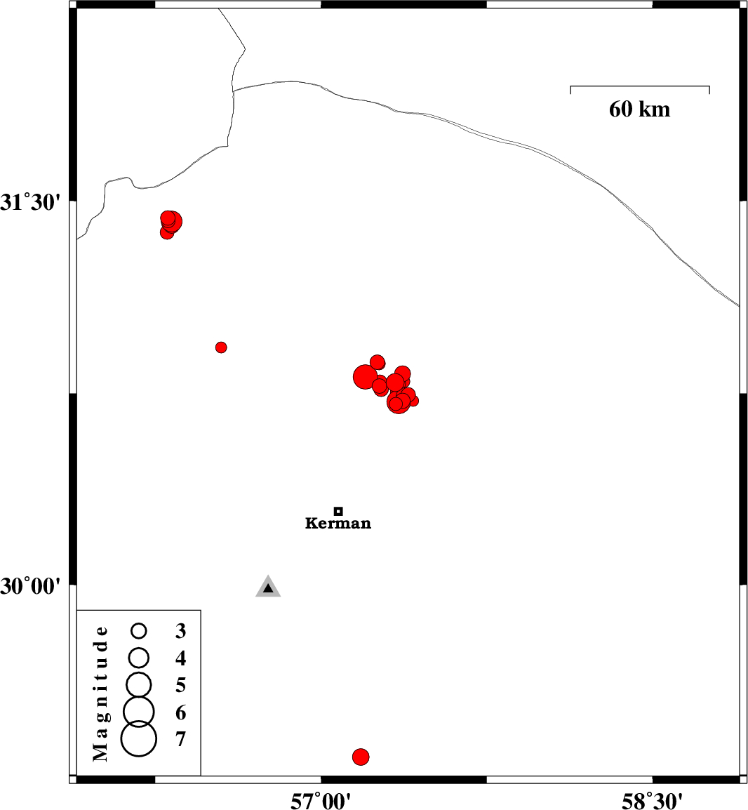 2017/12/27 10:13:09.7 13:43:09.7 30.75157.35714 ML:2.9 Kerman Province, 58 km North-East of Kerman
