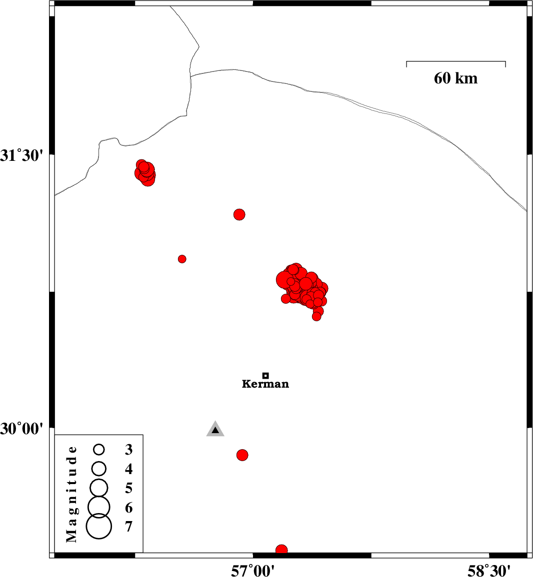 2017/12/27 10:13:09.7 13:43:09.7 30.75157.35714 ML:2.9 Kerman Province, 58 km North-East of Kerman