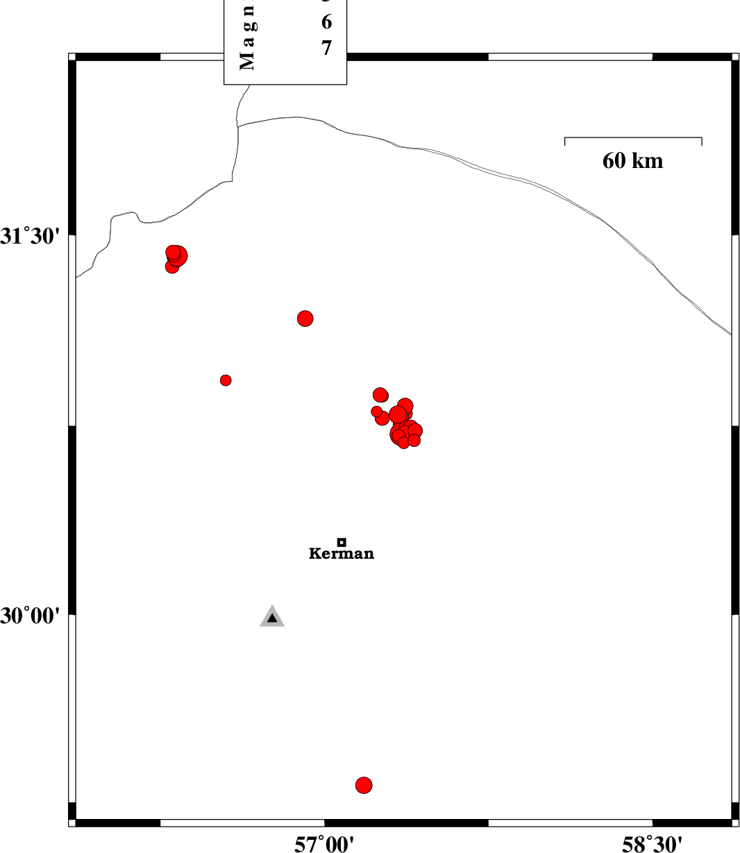 2018/01/04 13:05:29.0 16:35:29.0 30.7357.41514 ML:3 Kerman Province, 59 km North-East of Kerman