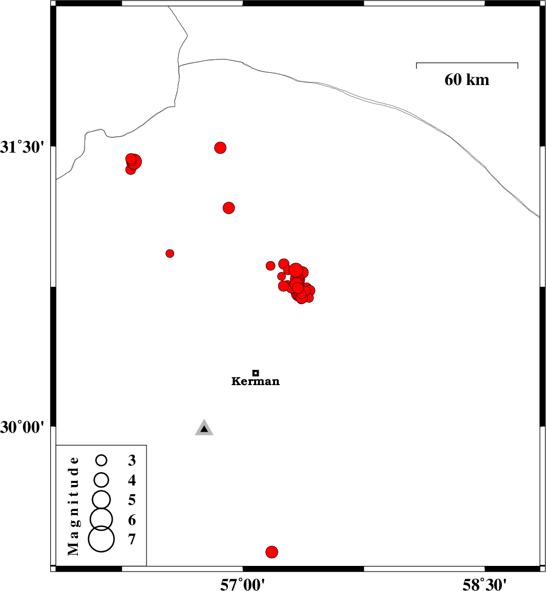2018/01/04 13:05:29.0 16:35:29.0 30.7357.41514 ML:3 Kerman Province, 59 km North-East of Kerman