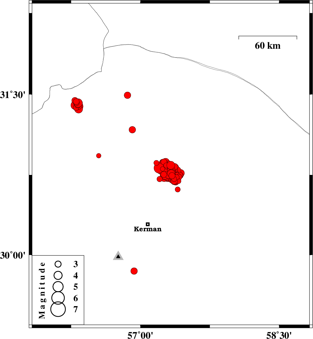 2018/01/04 13:05:29.0 16:35:29.0 30.7357.41514 ML:3 Kerman Province, 59 km North-East of Kerman