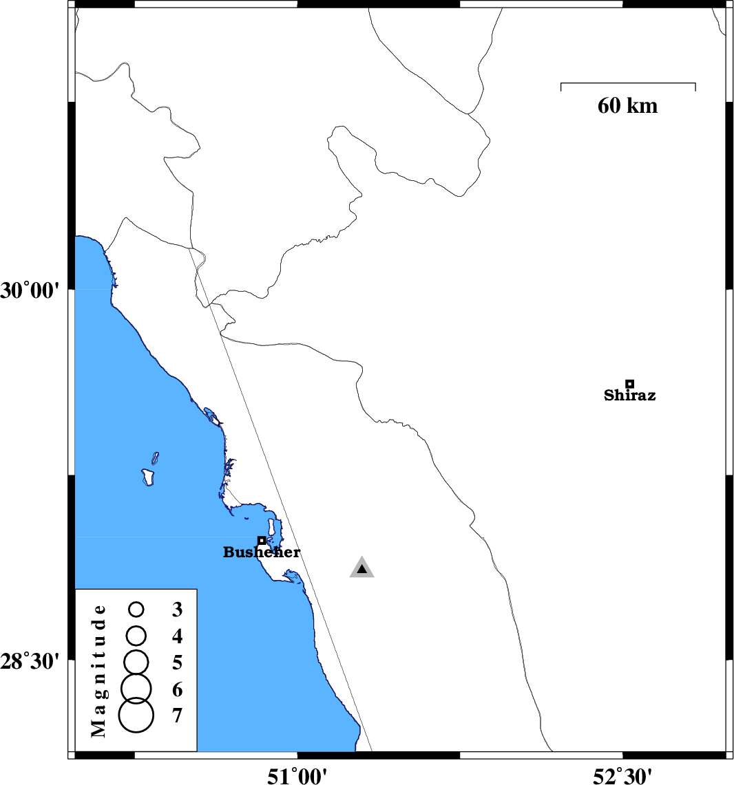 | 2018/01/09 | 08:56:39.2 | 12:26:39.2 | 29.625 | 51.475 | 15 | ML:3.9 | Fars Province, 17 km -West of Kazerun |