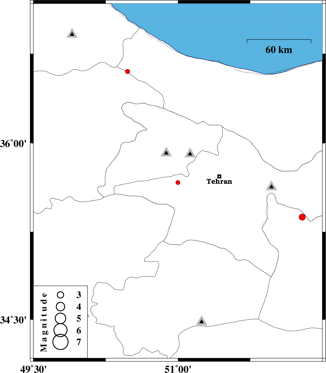 | 2018/01/10 | 07:46:46.7 | 11:16:46.7 | 35.374 | 52.29 | 15 | ML:3 | Semnan Province, 18 km North of Garmsar | ||