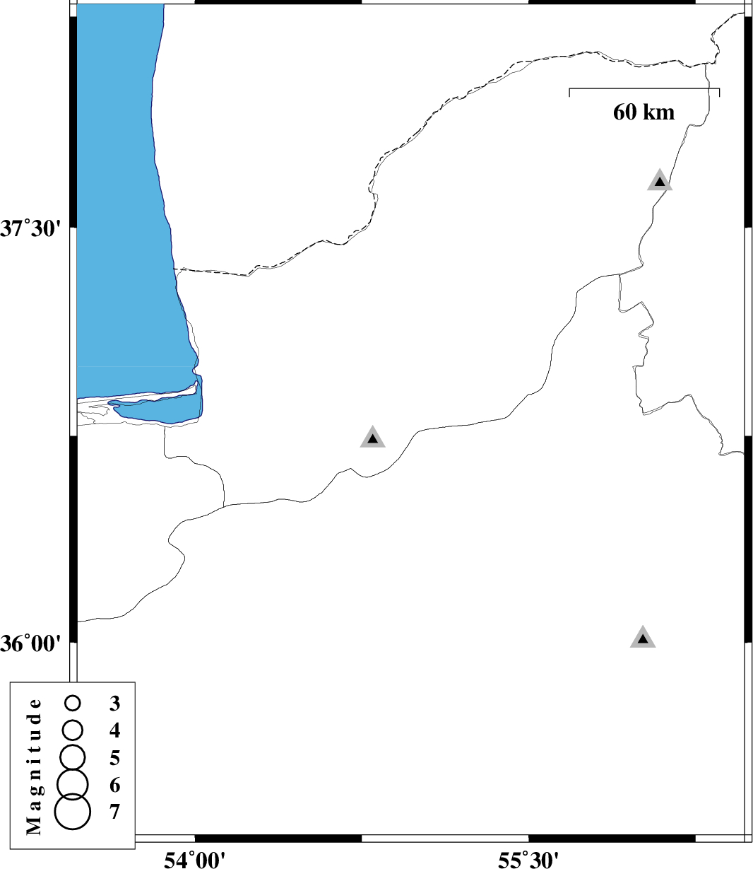 | 2018/01/12 | 23:42:21.4 | 03:12:21.4 | 36.795 | 54.97 | 14 | ML:2.5 | Golestan Province, 15 km South-East of Ali Abad |