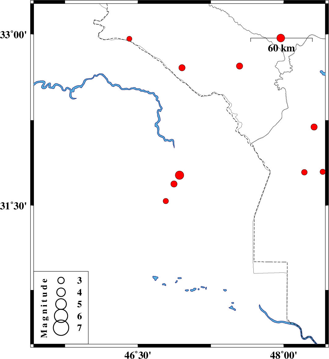 | 2018/01/15 | 22:06:37.5 | 01:36:37.5 | 31.689 | 46.871 | 14 | ML:3 | Iraq | ||