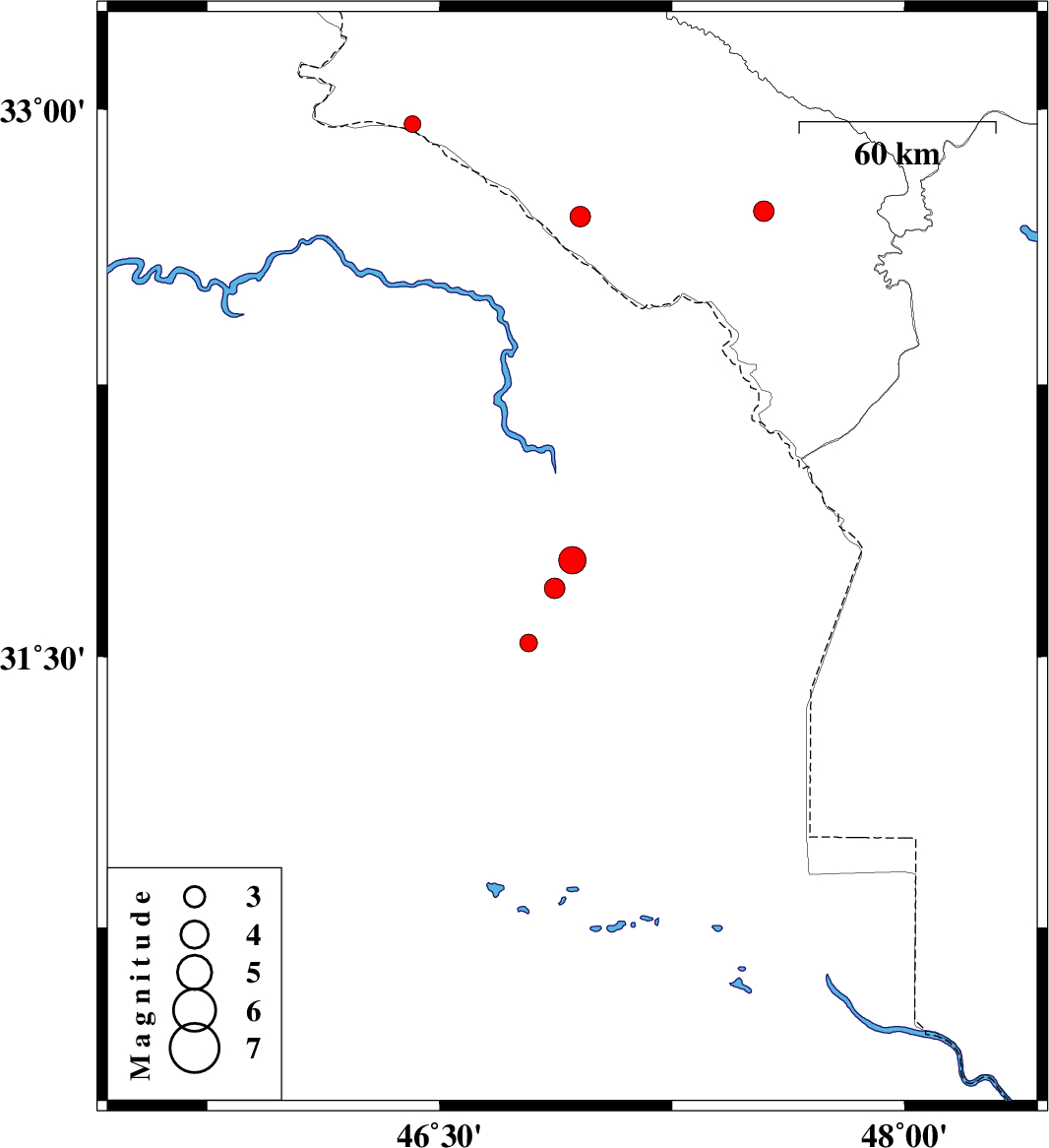 | 2018/01/15 | 22:06:37.5 | 01:36:37.5 | 31.689 | 46.871 | 14 | ML:3 | Iraq | ||