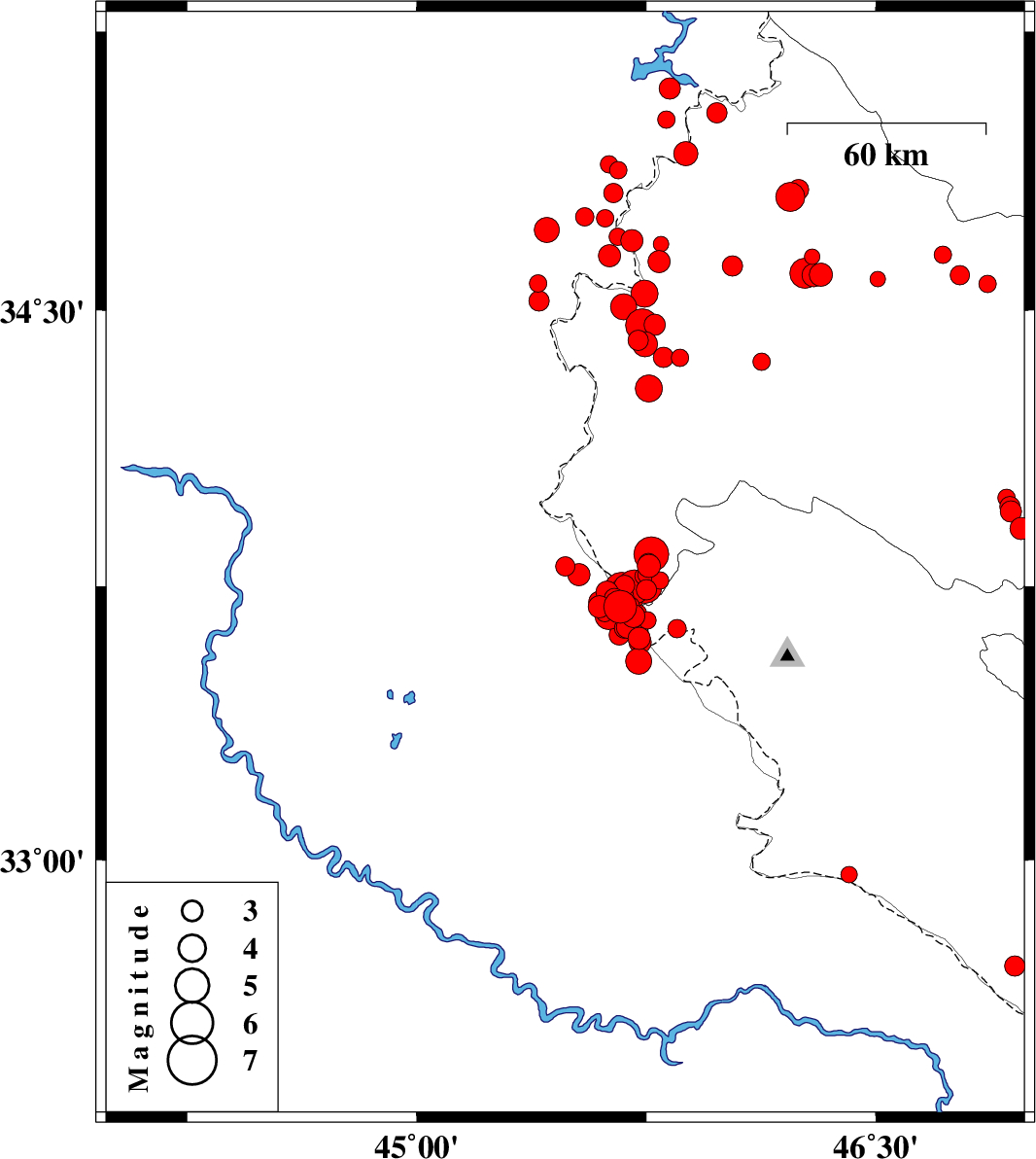 2018/01/14 06:06:57.9 09:36:57.9 33.81445.75614 ML:2.8 Kermanshah Province, 39 km South-West of Gilan-E-Gharb