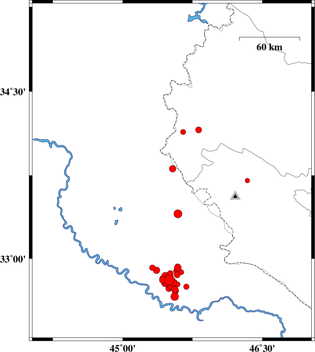 2018/01/13 03:52:25.7 07:22:25.7 33.61845.66114 ML:2.9 Iraq, 63 km South-West of Gilan-E-Gharb
