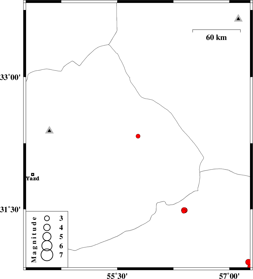 | 2018/01/19 | 03:13:13.7 | 06:43:13.7 | 30.892 | 57.253 | 14 | ML:3.5 | Kerman Province, 66 km -East of Zarand | ||