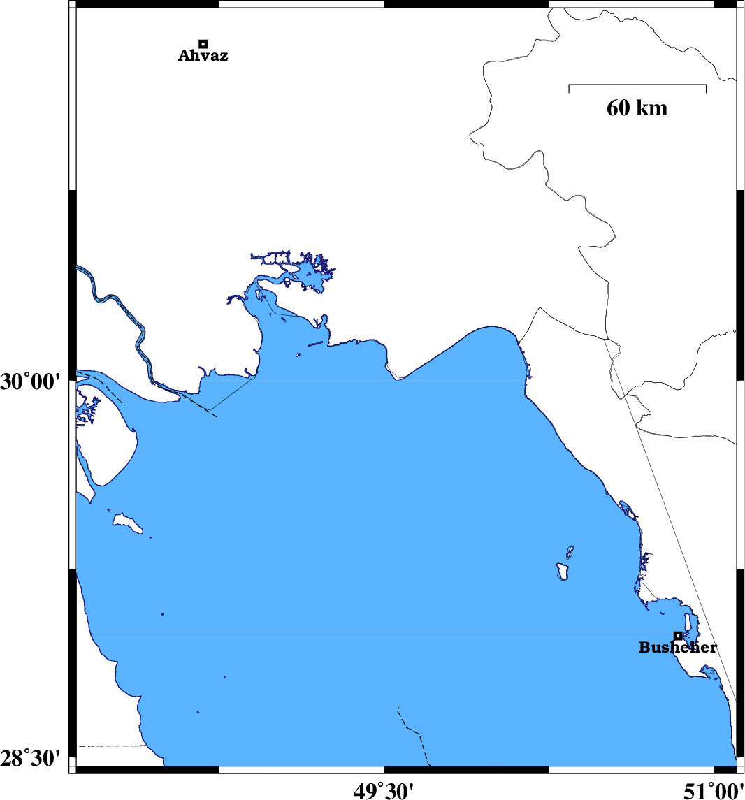 | 2018/01/22 | 18:48:40.6 | 22:18:40.6 | 29.963 | 49.602 | 14 | ML:3.3 | Persian Gulf, 32 km South-West of Hendijan | ||