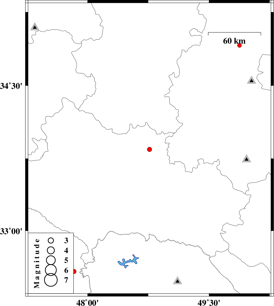 | 2018/01/28 | 04:55:46.2 | 08:25:46.2 | 32.576 | 47.832 | 14 | ML:2.5 | Ilam Province, 50 km North-West of Andimeshk |