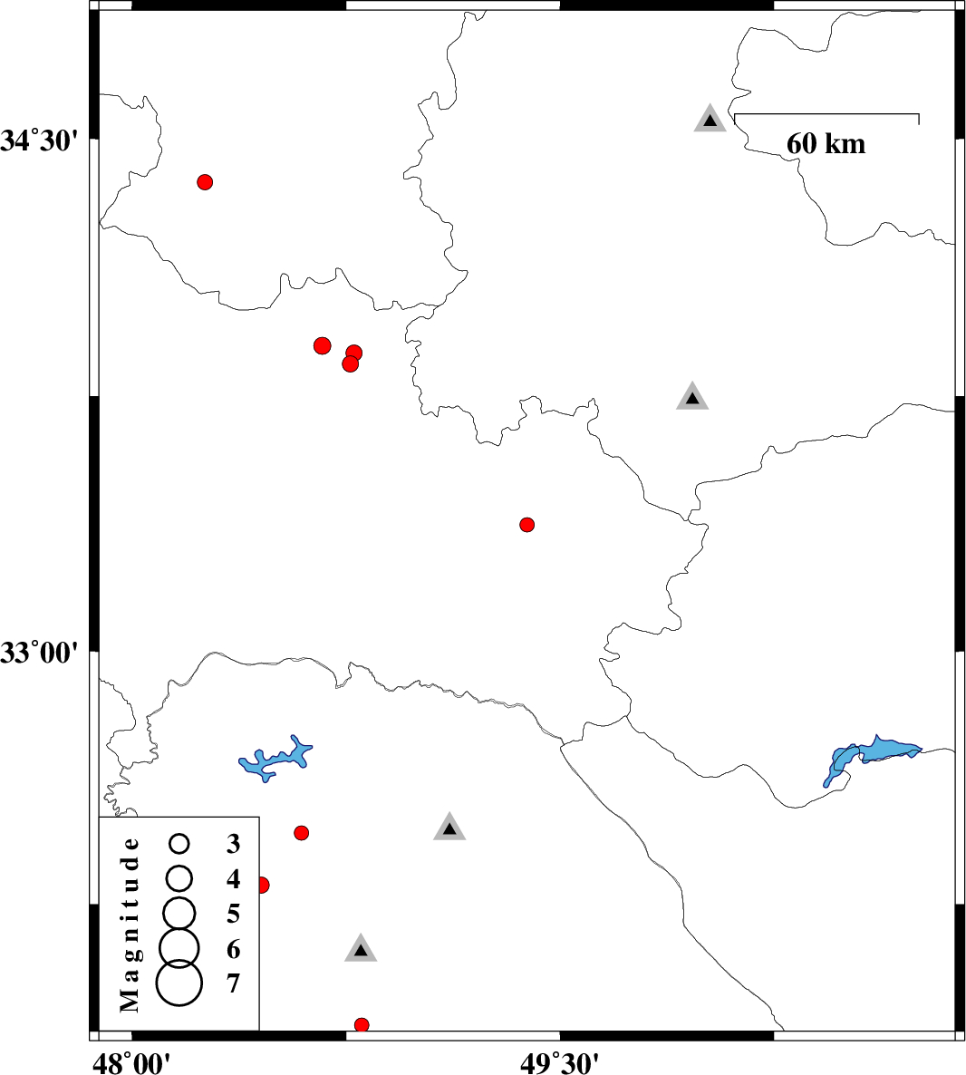 | 2018/02/05 | 02:31:29.9 | 06:01:29.9 | 33.372 | 49.384 | 8 | ML:2.3 | Lorestan Province, 12 km of Azna | ||