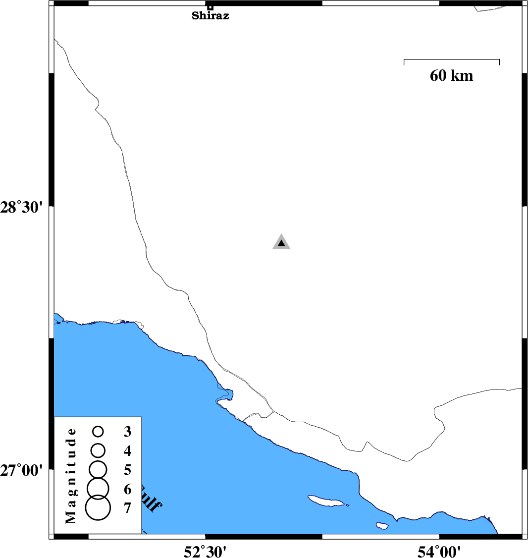 | 2018/02/09 | 12:05:31.6 | 15:35:31.6 | 28.128 | 53.03 | 14 | ML:3.2 | Fars Province, 37 km South of Qir va Karzin |