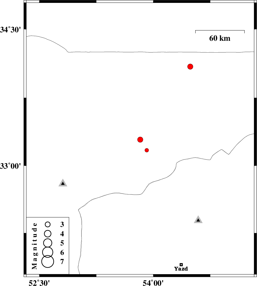 | 2018/01/15 | 16:57:53.9 | 20:27:53.9 | 34.091 | 54.487 | 14 | ML:3.3 | Esfahan Province, 231 km South-East of Damghan |
