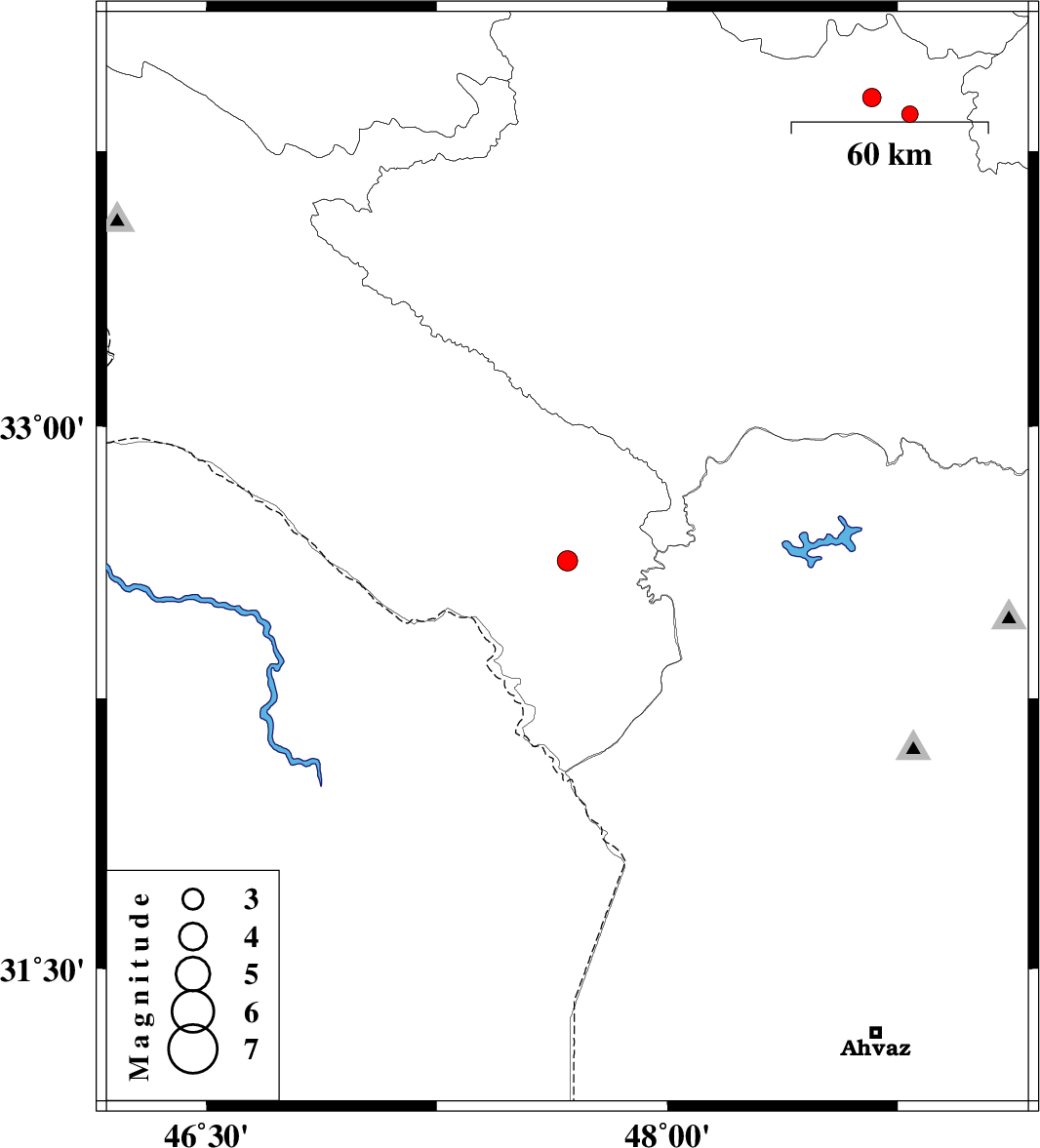 | 2018/02/11 | 10:45:41.3 | 14:15:41.3 | 32.63 | 47.675 | 17 | ML:2.9 | Ilam Province, 39 km -East of Dehloran | ||