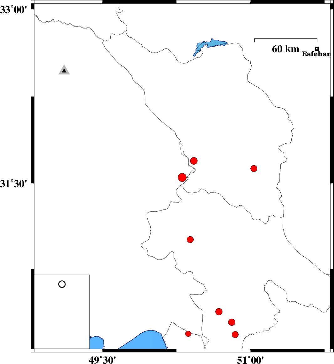 | 2018/01/28 | 20:33:53.2 | 00:03:53.2 | 31.628 | 51.034 | 16 | ML:2.9 | Chaharmahal Bakhtiari Province, 26 km North-East of Lordegan | ||