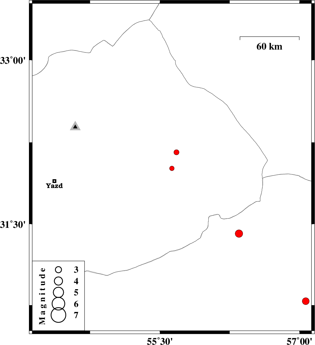| 2018/02/06 | 05:43:05.8 | 09:13:05.8 | 31.412 | 56.35 | 14 | ML:3.6 | Kerman Province, 47 km North-West of Ravar |
