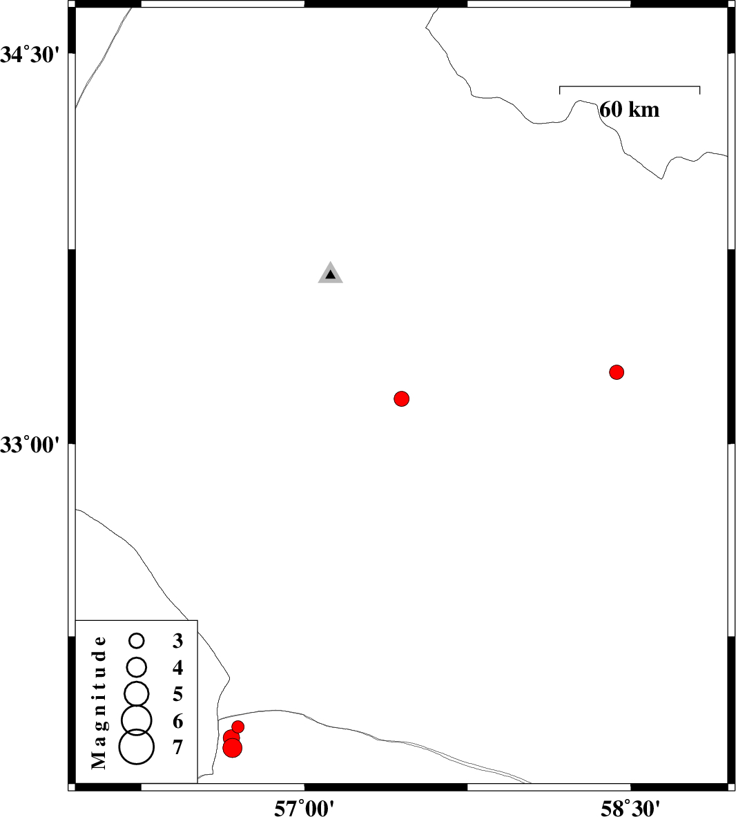 | 2018/02/13 | 03:30:33.1 | 07:00:33.1 | 33.174 | 57.446 | 14 | ML:3.1 | Yazd Province, 68 km South-East of Tabas | ||