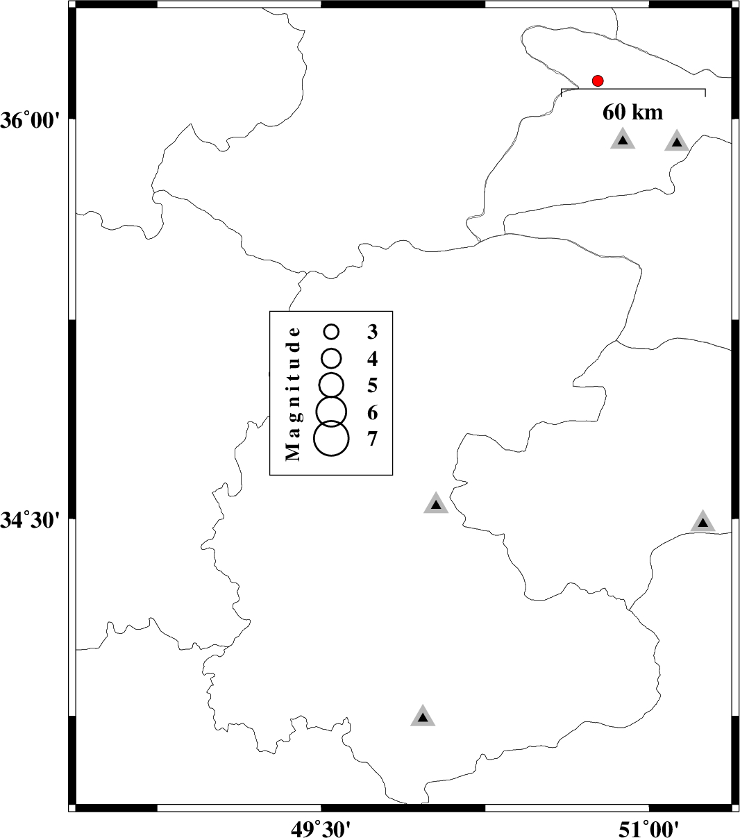 | 2018/01/30 | 19:47:04.6 | 23:17:04.6 | 34.911 | 49.877 | 6 | ML:2.2 | Markazi Province, 28 km North-West of Tafresh | ||