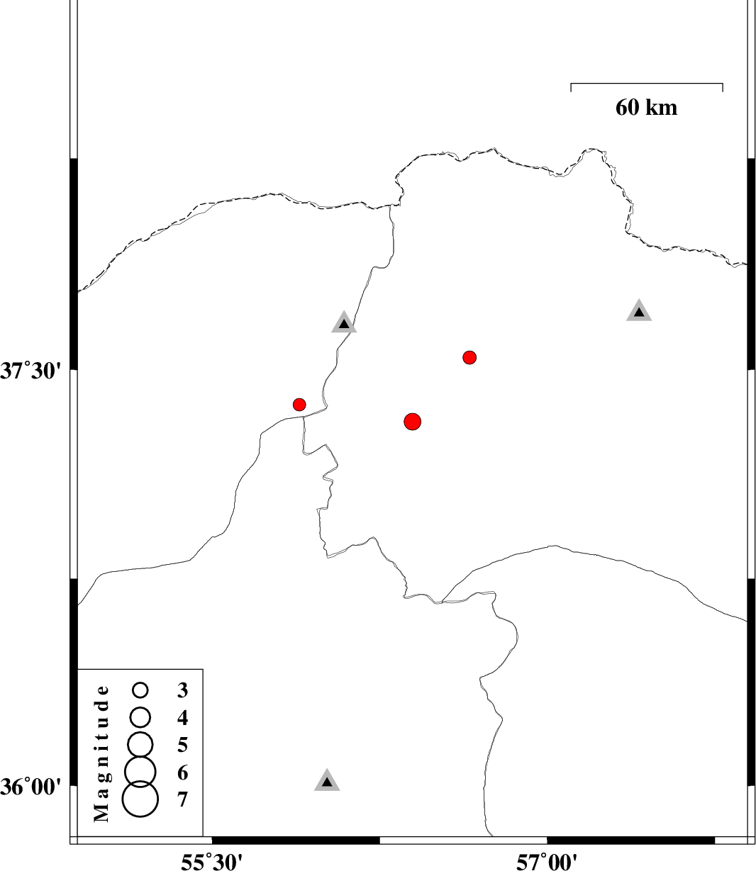 | 2018/02/14 | 19:57:58.4 | 23:27:58.4 | 37.374 | 55.89 | 15 | ML:2.5 | Golestan Province, 35 km -East of Kalaleh | ||