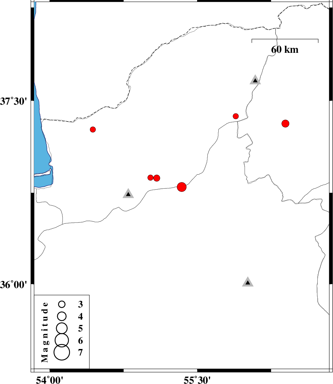 | 2018/02/14 | 19:57:58.4 | 23:27:58.4 | 37.374 | 55.89 | 15 | ML:2.5 | Golestan Province, 35 km -East of Kalaleh | ||