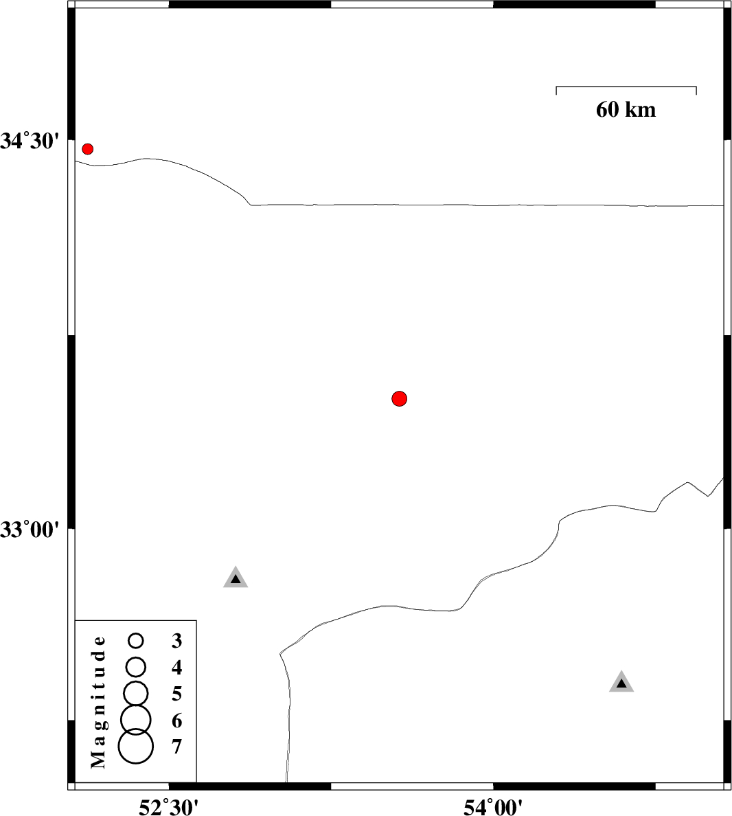 | 2018/02/15 | 00:30:49.6 | 04:00:49.6 | 34.465 | 52.124 | 14 | ML:2.2 | Semnan Province, 86 km South-West of Garmsar |