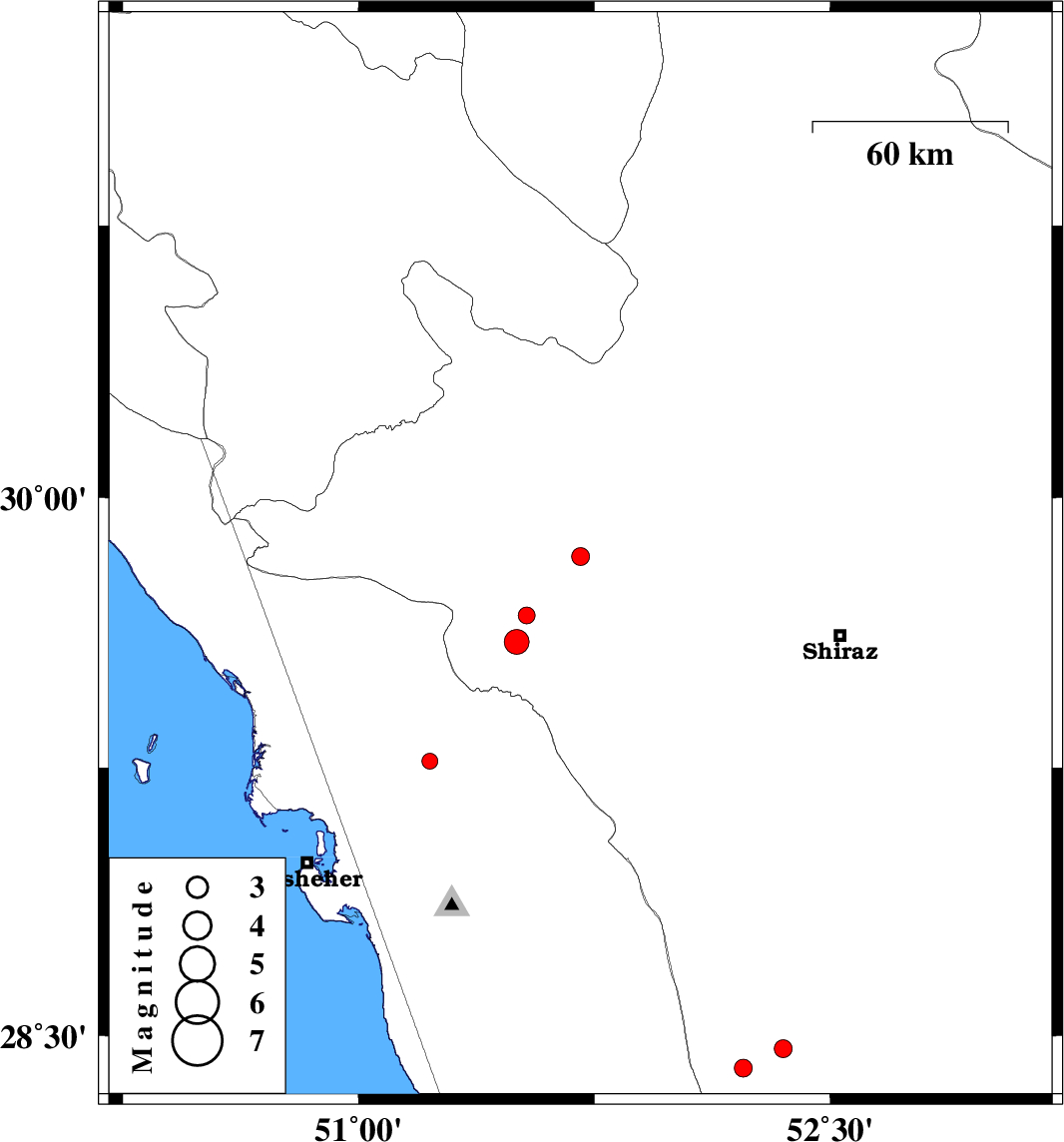 | 2018/02/18 | 02:12:07.4 | 05:42:07.4 | 29.837 | 51.706 | 6 | ML:2.6 | Fars Province, 25 km North of Kazerun | ||