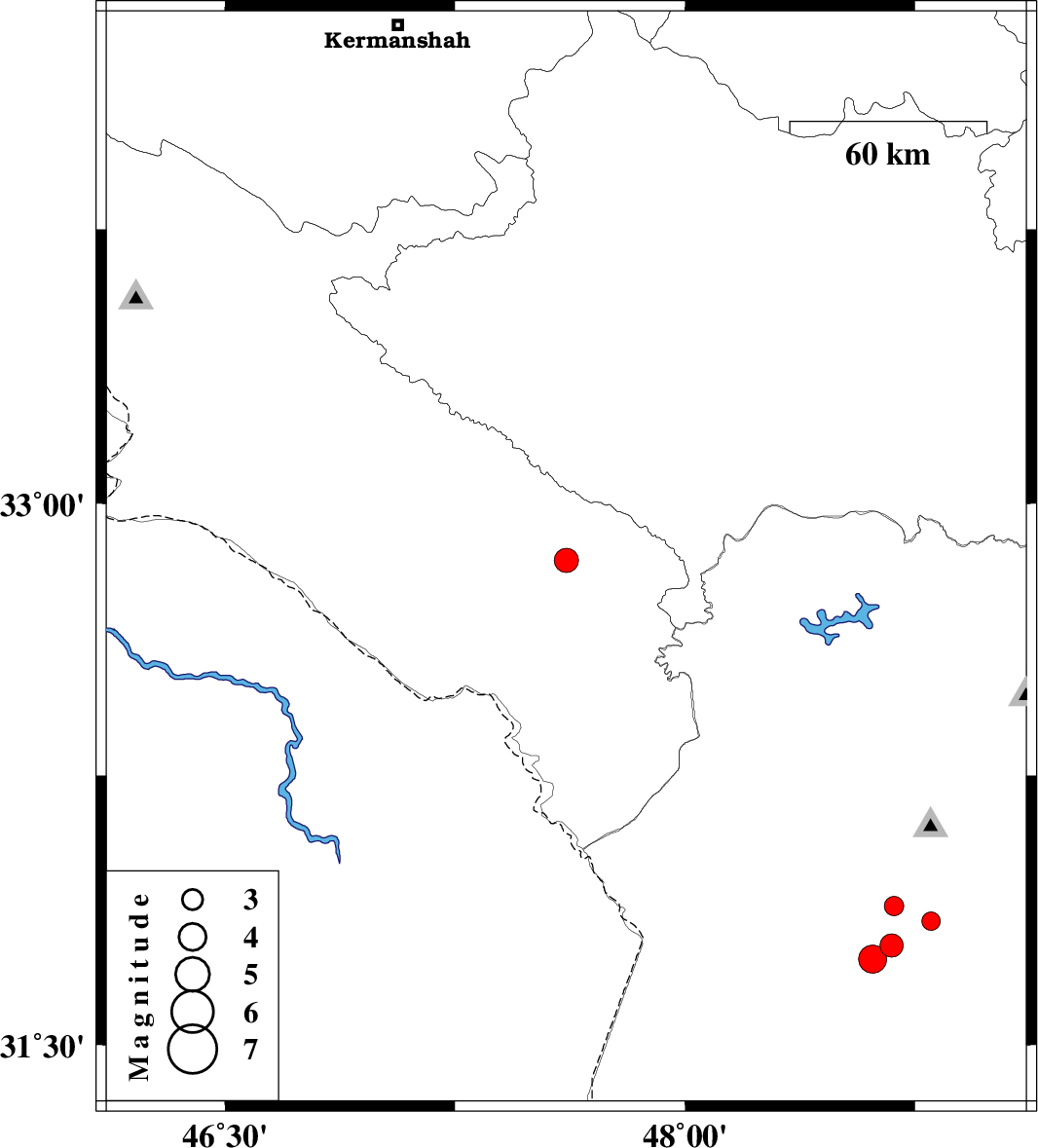 | 2018/02/16 | 20:15:39.2 | 23:45:39.2 | 31.888 | 48.681 | 15 | ML:2.8 | Khoozestan Province, 24 km South-West of Shushtar | ||