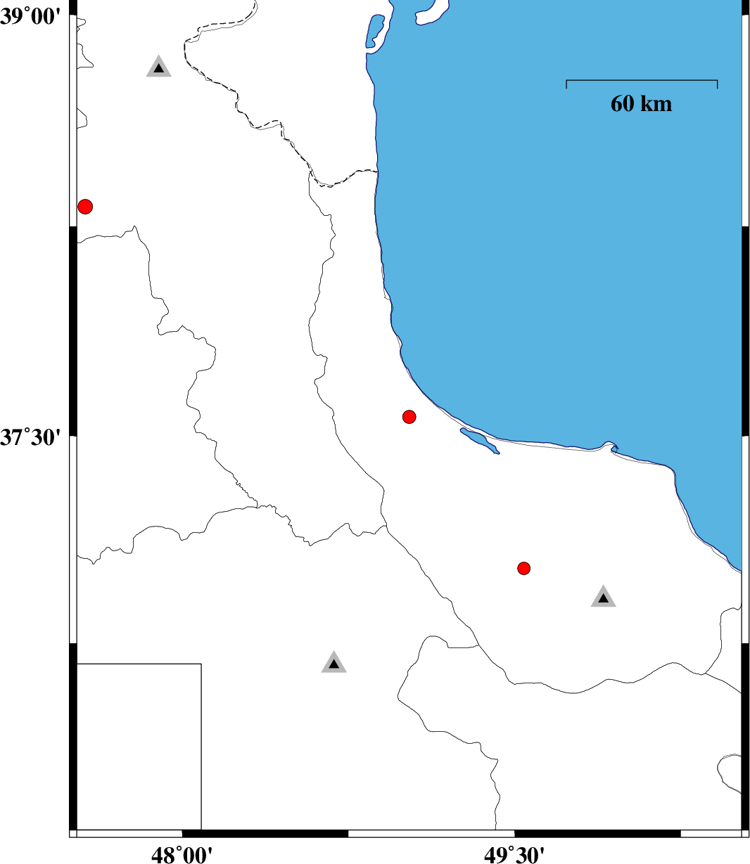 | 2018/02/05 | 00:33:20.4 | 04:03:20.4 | 37.022 | 49.542 | 15 | ML:2.5 | Gilan Province, 20 km South-East of Shaft |