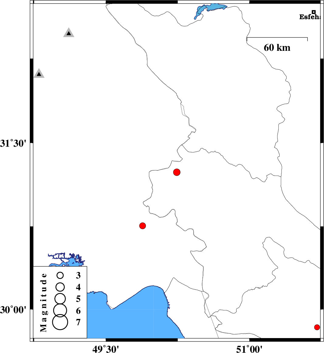 | 2018/02/18 | 02:12:07.4 | 05:42:07.4 | 29.837 | 51.706 | 6 | ML:2.6 | Fars Province, 25 km North of Kazerun |