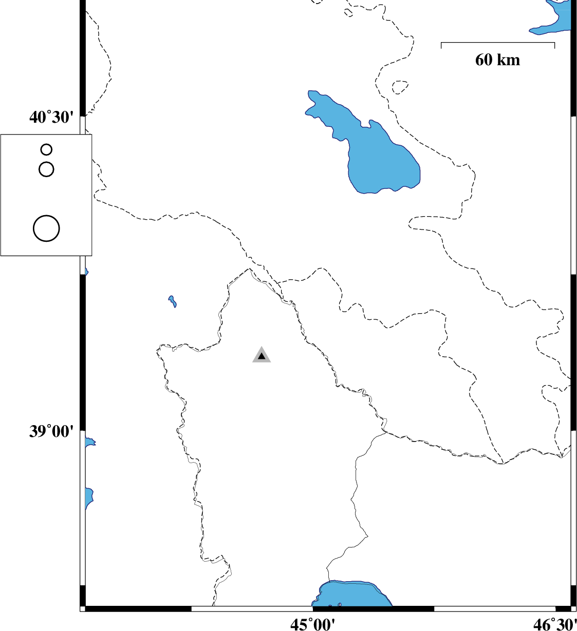 | 2018/02/25 | 13:02:27.6 | 16:32:27.6 | 39.648 | 45.094 | 15 | ML:2.9 | Azerbaijan, 56 km North-West of Nakhicevan |
