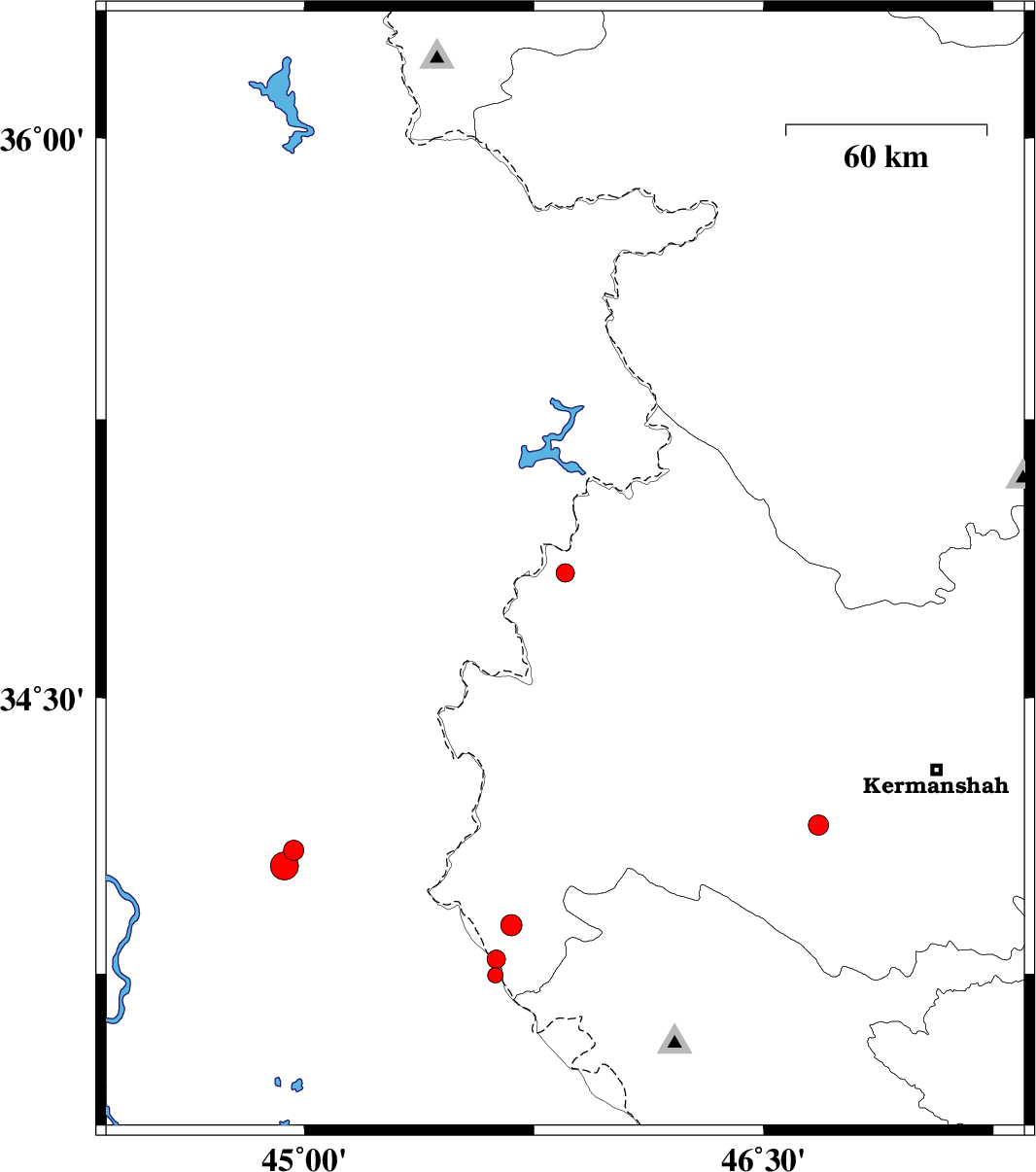 | 2018/02/27 | 13:00:16.9 | 16:30:16.9 | 34.155 | 46.679 | 14 | ML:2.9 | Kermanshah Province, 8 km of Eslam Abad-E-Gharb | ||