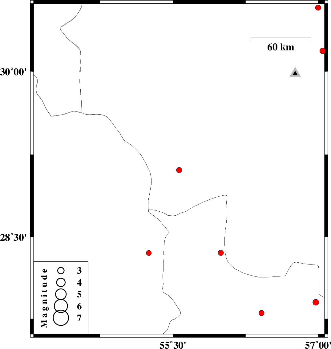 | 2018/02/01 | 15:19:24.2 | 18:49:24.2 | 30.571 | 56.998 | 7 | ML:2.5 | Kerman Province, 32 km North of Kerman |