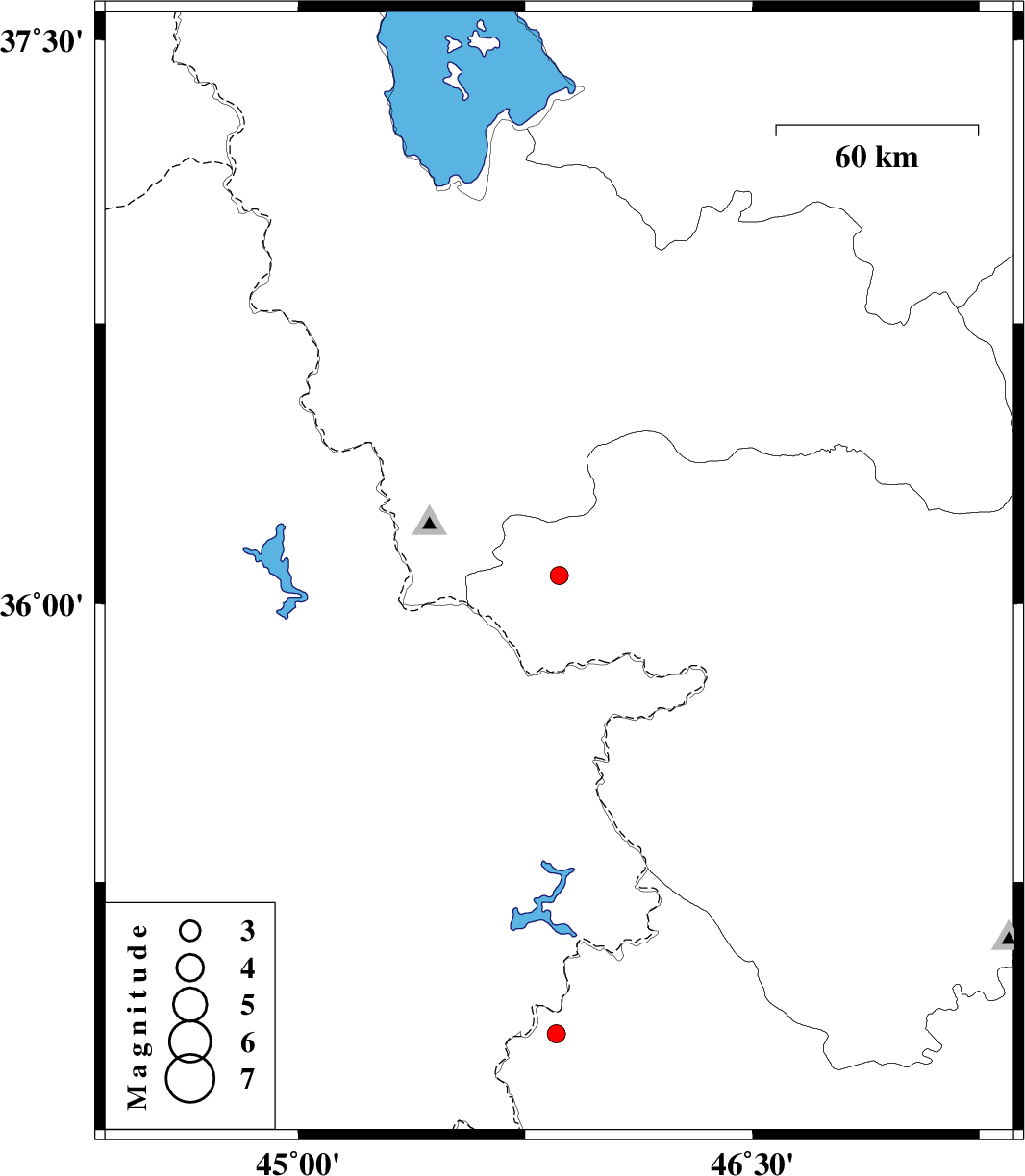 | 2018/03/01 | 21:34:00.3 | 01:04:00.3 | 36.076 | 45.862 | 16 | ML:2.7 | Kurdistan Province, 10 km of Baneh | ||