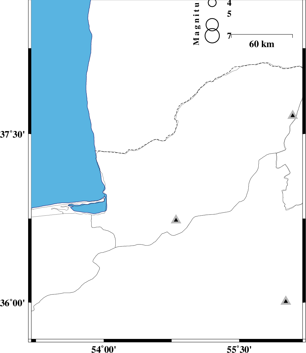 | 2018/02/23 | 07:33:05.1 | 11:03:05.1 | 36.541 | 54.431 | 14 | ML:2.5 | Golestan Province, 33 km South of Gorgan | ||