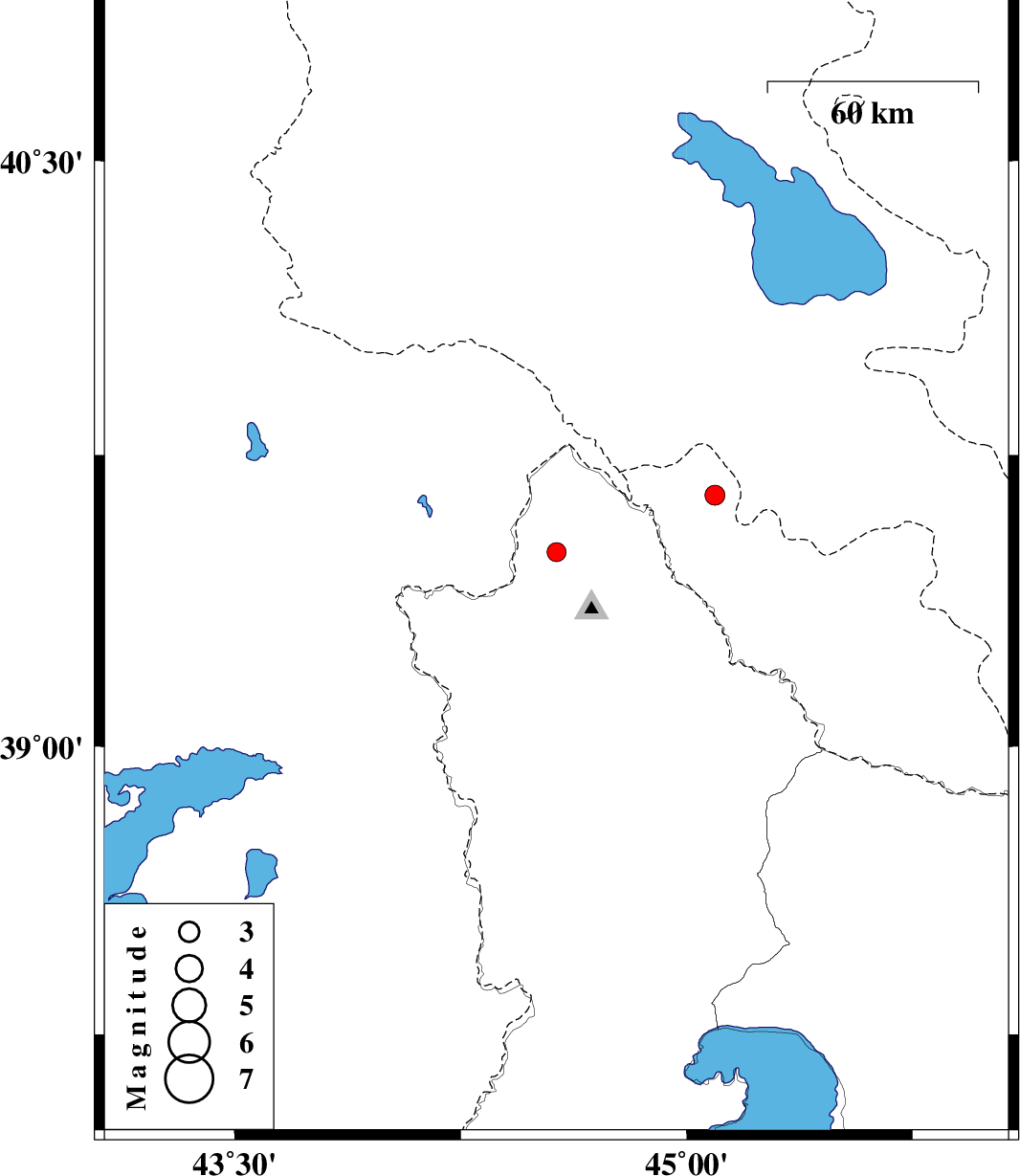 | 2018/02/25 | 13:02:27.6 | 16:32:27.6 | 39.648 | 45.094 | 15 | ML:2.9 | Azerbaijan, 56 km North-West of Nakhicevan |