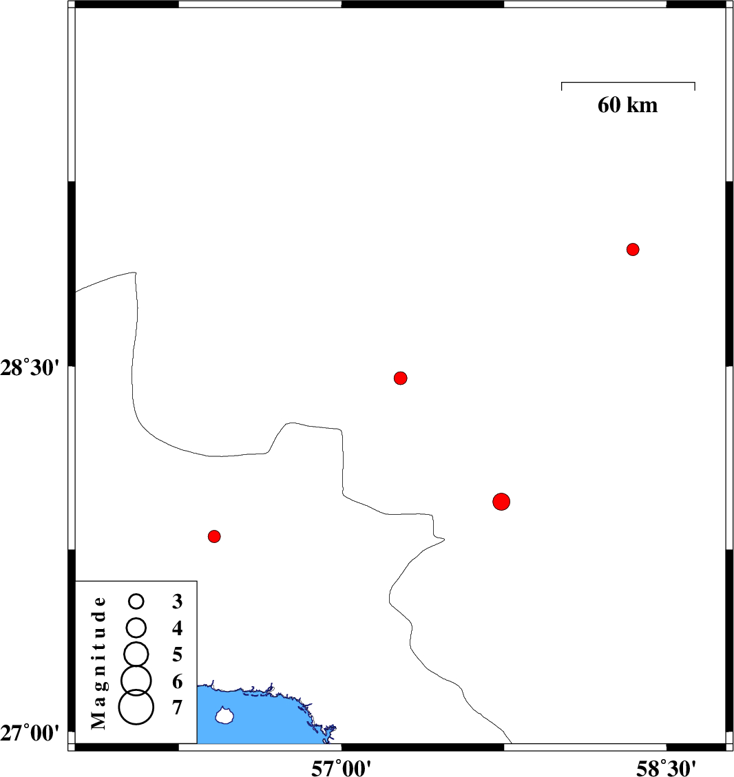 | 2018/02/26 | 01:55:09.5 | 05:25:09.5 | 27.945 | 57.738 | 14 | ML:3.5 | Kerman Province, 4 km of Kahnuj |