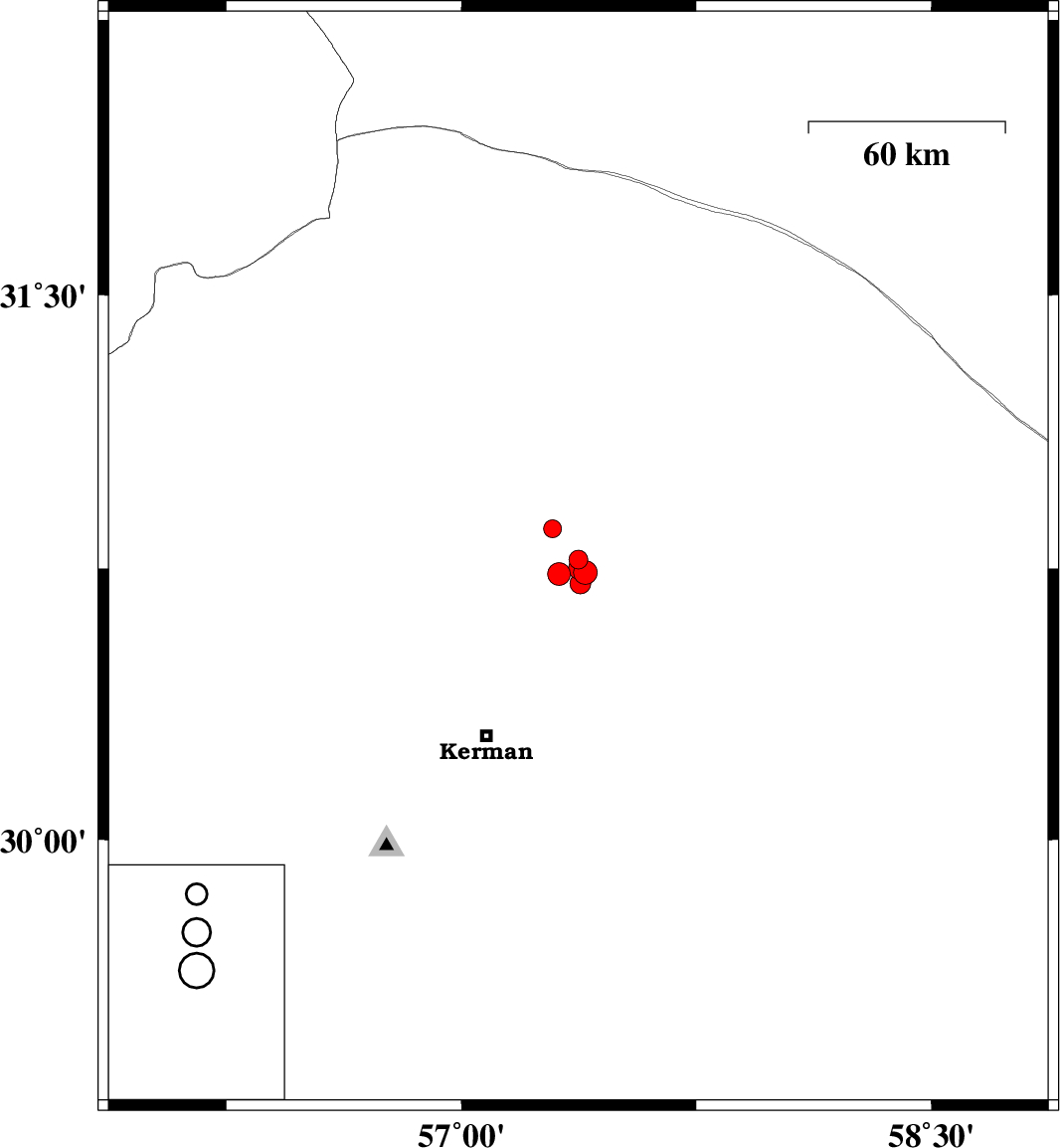 | 2018/03/04 | 11:35:27.1 | 15:05:27.1 | 30.708 | 57.38 | 14 | ML:3 | Kerman Province, 55 km North-East of Kerman |