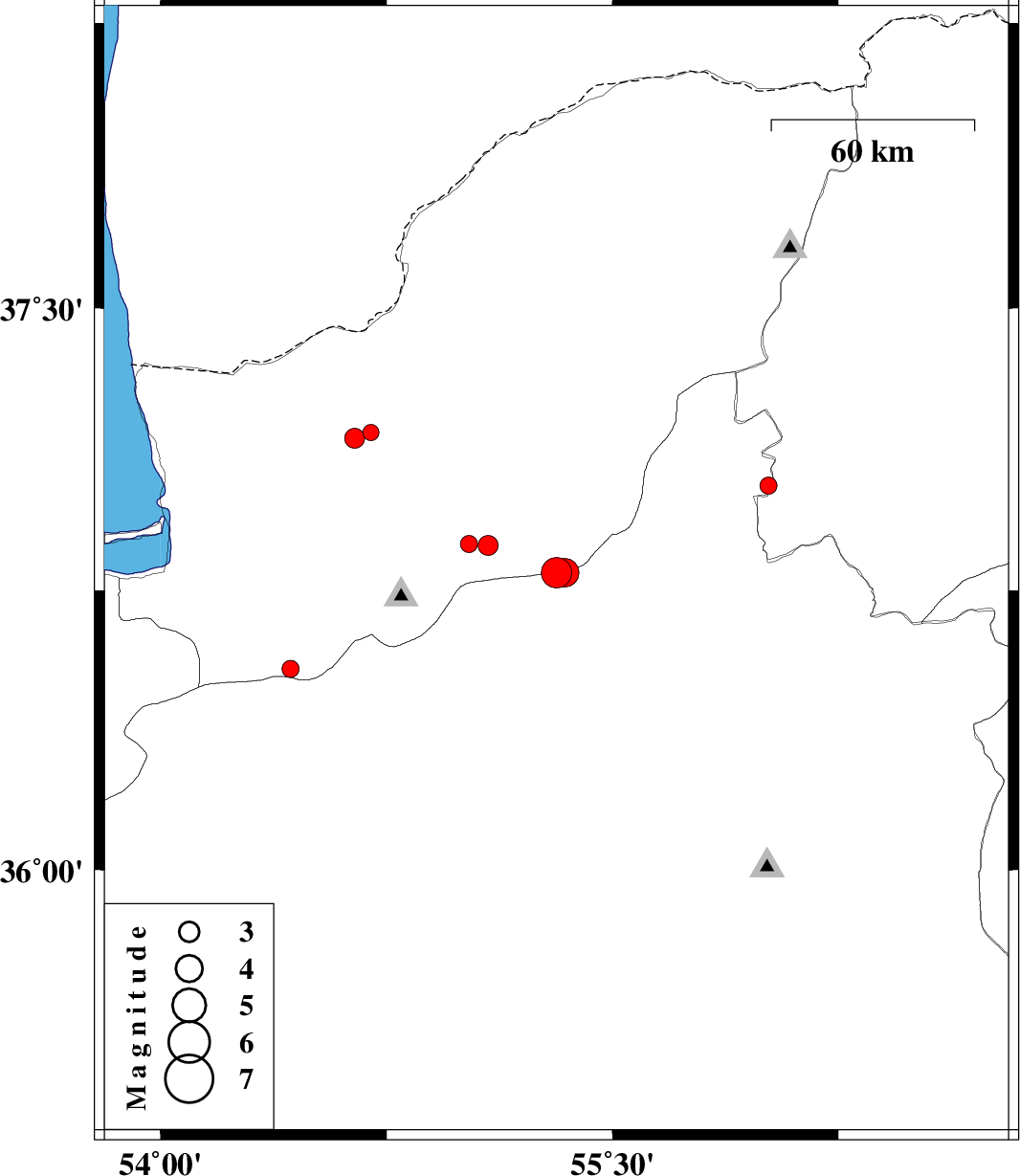| 2018/03/02 | 03:01:45.5 | 06:31:45.5 | 37.171 | 54.699 | 6 | ML:2.4 | Golestan Province, 28 km North-East of Aq Qaleh | ||