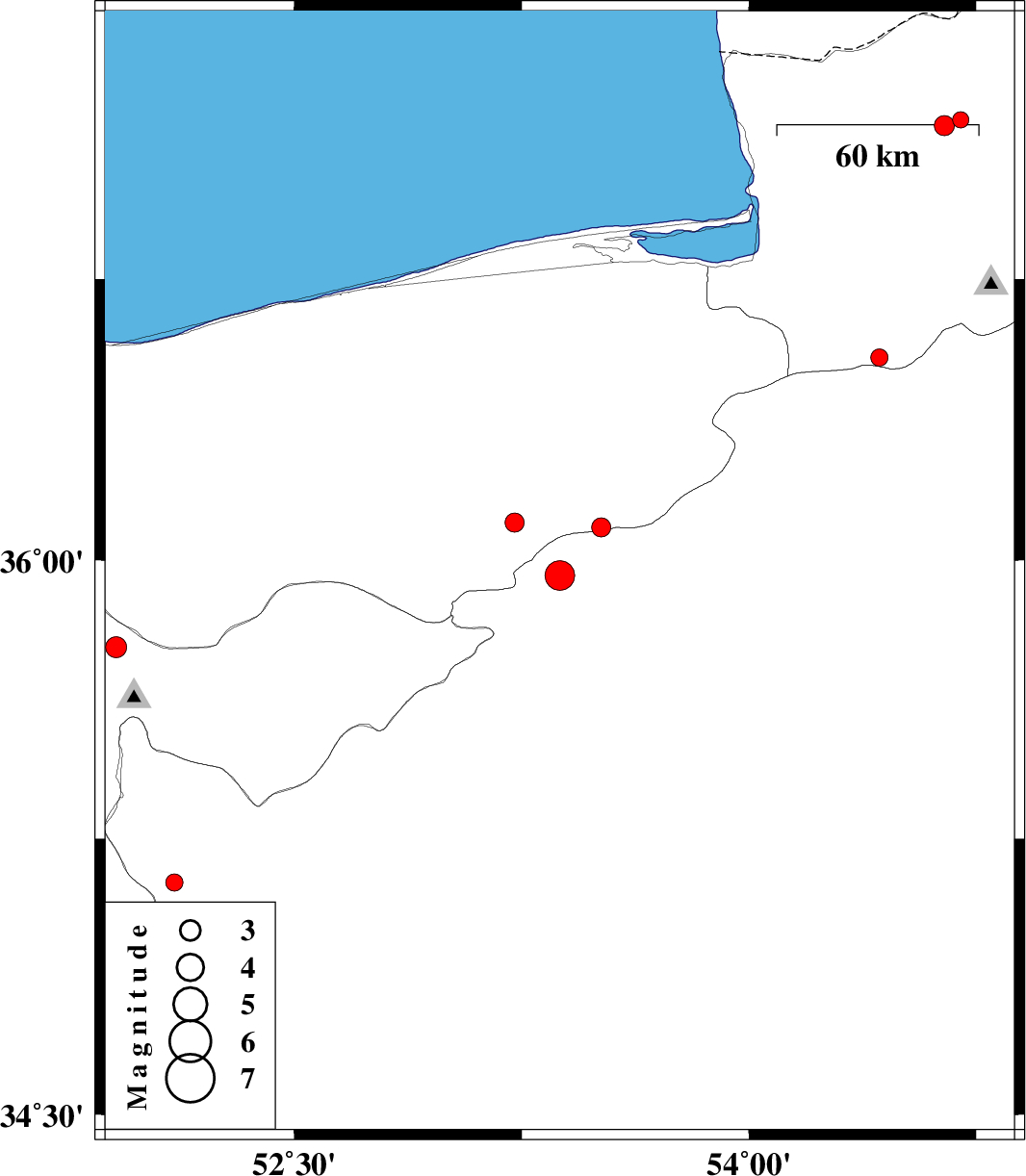| 2018/03/20 | 02:40:22.5 | 06:10:22.5 | 35.959 | 53.376 | 15 | ML:4.4 | Semnan Province, 44 km North of Semnan | ||